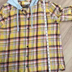 PacSun Hooded Plaid Flannel Shirt Jacket Yellow Red Gray Size M
