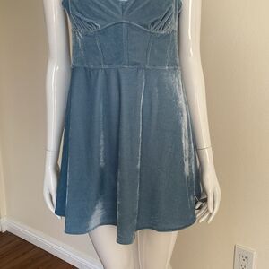 Urban Outfitters Genivieve Blue Velvet Corset Mini Dress Size Large
