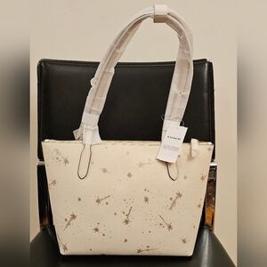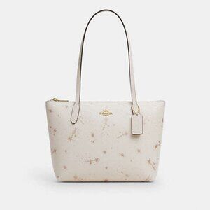 Printed coated canvas and smooth leather Inside cell phone and multifunction pockets Zip-top closure fabric lining Handles with 9 1/2 drop 9 1/2 (L) x 8 1/4 (H) x 3 3/4 (W) Style No. CCL43