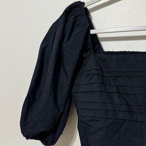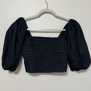Abercrombie & Fitch Emerson Top Size Small Black Poplin Crop Shirt Puff Sleeve