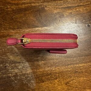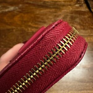 In good preloved condition. No major wear but there is light wear that is not that noticeable in my opinion. The edges have wear but light. Zipper is smooth. Cards are included. Perfect statement piece when you take it out of a purse.