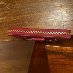Authentic Prada Elegant Bow Wallet in dark pink/purple color.