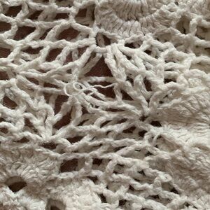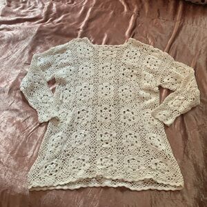 Vintage 90s long sleeve crocheted sweater top. Tunic length. Cotton ramie blend Floral motifs Great condition. A few loose strings but not noticeable Pit to pit 23” Length shoulder to hem 29”