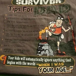 Men’s Top Survivor Tips For Dad T-Shirt Size XL. In good used condition with minimal wear. No rips or stains.