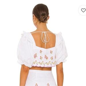 Majorelle top, Majorelle crop top, embroidered linen top, floral crop top, ivory linen blouse, puff sleeve crop top, summer linen top, boho embroidered top, revolve crop top, Majorelle XL, daydream ivory top, feminine blouse, festival top, airy linen crop, romantic embroidered top.