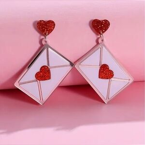 Valentines Day Heart Envelope Drop Earrings Love Letters Modern New Adorable