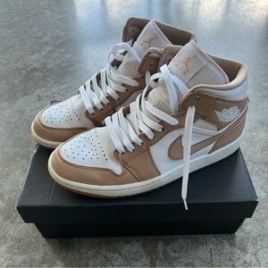 Jordan 1 Mid Tan Gum Hemp White Sneakers Men’s Size 9 w/ Original Box