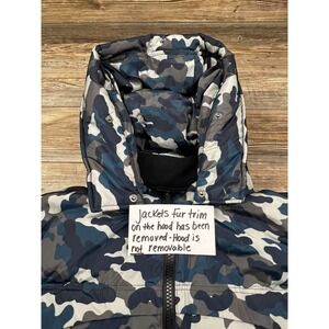 Jackets fur trim on the hood has been removed. Hood is not removable