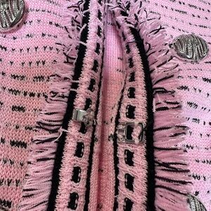 Ming Wang Lapel Collar Jacket - Eyelash Trim Knit, Perfect Pink in Size S