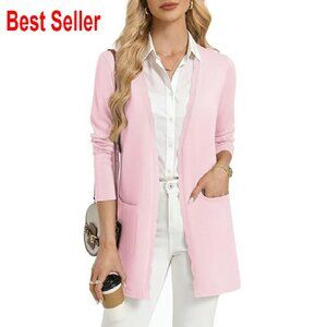 Long Lightweight Cardigan Knit Blazer Open Front Sweater Chic Minimal