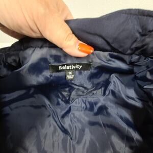 Relativity women's blue quilted zipper vest. New with tags. Size 1X. This cozy vest is perfect for layering and adding warmth to any outfit! Features zipper pockets for secure storage.