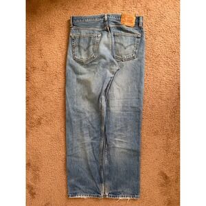 Levi's 501 Jeans Mens Tag 33x30 Blue Wash Distressed Button Fly Denim Pants
