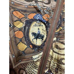 VTG 100% Silk Bomber Jacket Women’s XL Browns Horses Lined Equestrian Zip Front