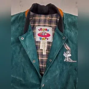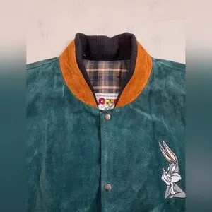 Vintage 1993 Looney Tunes Leather Suede Varsity Jacket XL