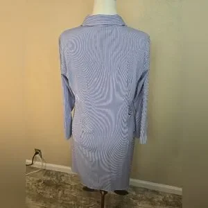 NY Collection Navy White Striped Shirt Dress Large (6129)