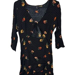 Forever 21 Black Floral Tie Front Dress