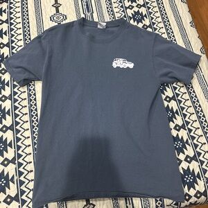 Casual blue t-shirt with a white graphic design on the chest. Perfect for everyday wear.