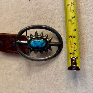 Be-Low the Belt vintage western style tooled leather and turquise buckle.