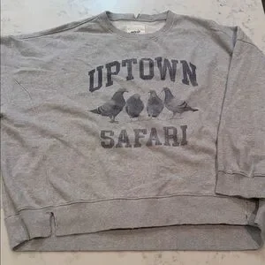 Super comfy and oversized Aerie graphic sweatshirt featuring “Uptown Safari” with the cutest pigeon graphic. Has that worn-in, vintage look that Aerie is known for — plus extra distressing along the hem and neckline.