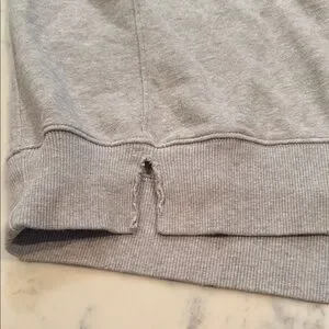 🪡 There are a few holes/tears along the bottom hem and light distressing on the sleeve cuff (shown in photos).
