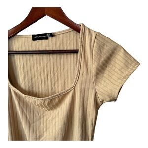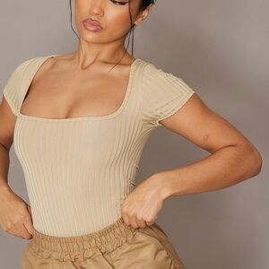 🔹5/$25🔹 PrettyLittleThing Wide Rib Square Neck Short Sleeve Bodysuit Stone. Sz 8
