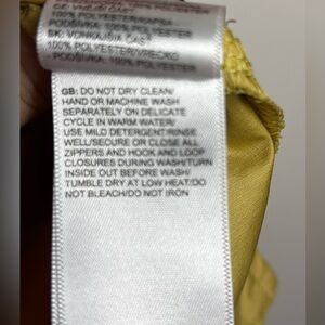 No signs of wear at all. Combo of mustard yellow, blue and rust colors. Classic pullover to add to your wardrobe.