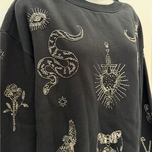 Allsaints Pippa Hex Black w/Beaded Embellishments Sweatshirt Sz L