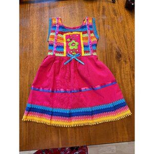 The vibrant colors of this handmade dress tell a story of culture and celebration. Intricate embroidery dances across the fabric, while the waist tie creates a whimsical touch. Perfect for festive gatherings, this dress is a playful blend of tradition and style, igniting joy wherever it goes.