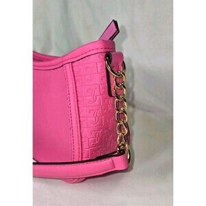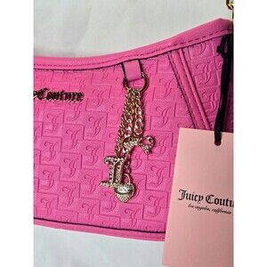 NWT Juicy Couture Pink Embossed Logo Crescent Shoulder Bag Gold Chain Charm