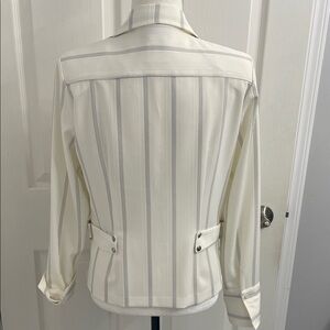 Frank Lyman Design Winter White Striped Blazer Top Button Down Front & Cuffs Sz8