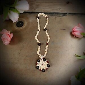 - 1 Vintage Hawaiian Cowrie Shell Flower Pendant Lei