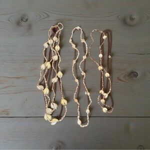 - 3 Vintage Hawaiian Cowrie and Tiny Sea Shell Lei Necklaces