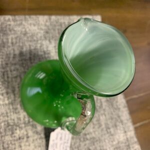 This is a vintage Empoli hand-blown green glass pitcher or vase.