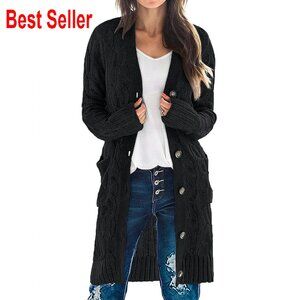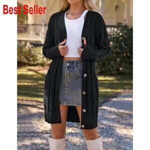 Cable Knit Cardigan Sweater Long Sleeve Oversized Chic Fall Winter Outerwear