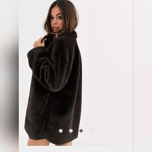 Brand new with tags Pull&Bear faux fur jacket originally sold at ASOS. Ultra-soft teddy texture with a rich chocolate brown color — perfect for fall and winter layering. Trendy oversized look that pairs great with jeans, dresses, or boots.