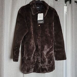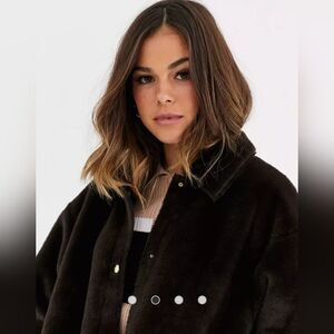 NWT Pull&Bear Faux Fur Jacket Chocolate Brown Button Front Coat Size Small ASOS