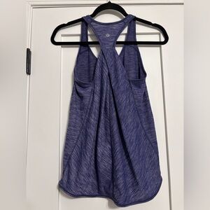 Heathered purple tank with racerback design. Ideal for active or casual wear.