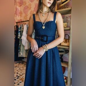 CARA CARA Calypso Dress In Navy Chalk Stripe, NWOT, NEVER WORN, NO FLAWS.