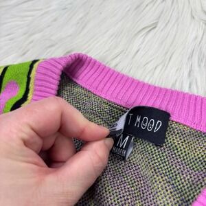Current Mood Women's M Oil Slick Acid Trip Button Cardigan E-Girl Urban Artsy