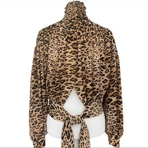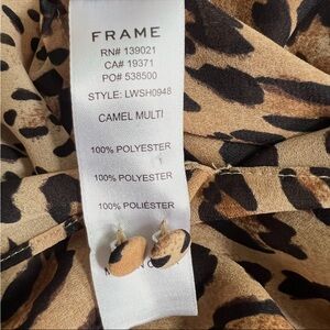 FRAME SMOCKED CHEETAH BLOUSE TIE BACK TOP in CAMEL MULTI