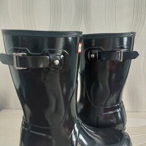 Hunter Classic Short Gloss Rain Boots Black 8 Mid Calf Shiny Like New