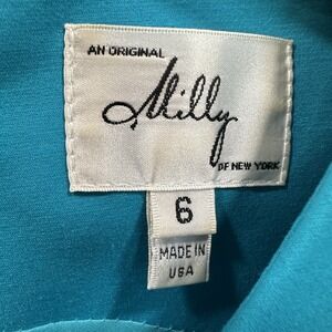 The Milly of New York Sleeveless Halter Tweed Mini A-Line Dress in Turquoise size 6 is a stylish and versatile piece perfect for various occasions such as weddings, parties, or formal events. Made from blue tweed fabric with a classic solid pattern, this zip-closed dress features a flattering A-line silhouette and a collarless design. The dress is lined for added comfort and is designed to be dry cleaned only. Perfect for the summer and spring seasons, this dress exudes a timeless elegance with a touch of sophistication.