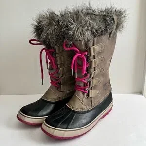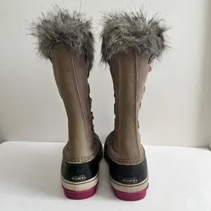 RARE !!! SOREL Joan Of Arctic Faux Fur Lined Suede Pebble Deep Blush Boots Wool Liner