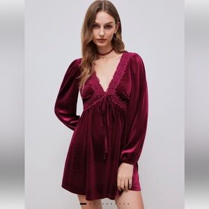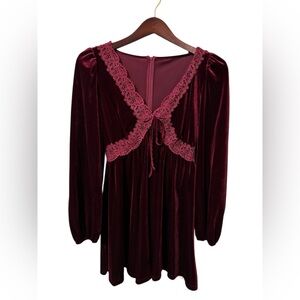 ⚡️NWT CIDER VELVET V-NECK KNOTTED LACE RUFFLE MINI DRESS