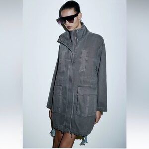 NWOT Oversized denim parka high neck. Size XS