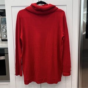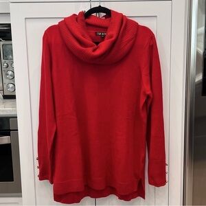Elevate your style with this bold, lightweight red cowl neck sweater from IMAN
