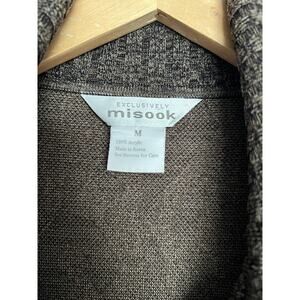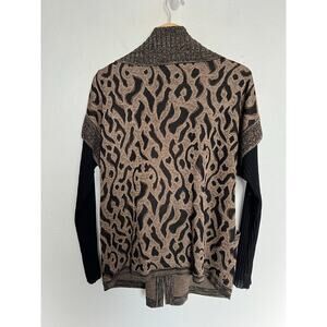 Misook Sweater Jacket Medium Full Zip Black Brown Animal Leopard Print Acrylic
