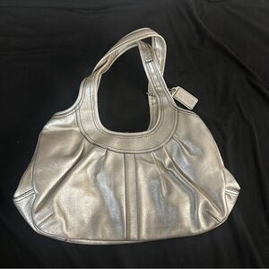 Authentic, pre-loved Coach Ergo Kisslock Silver Leather Shoulder Hand Bag