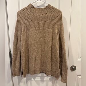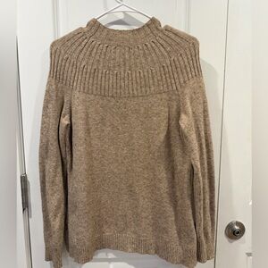Elegant tan sweater with a cozy cowl neck. Perfect for layering.