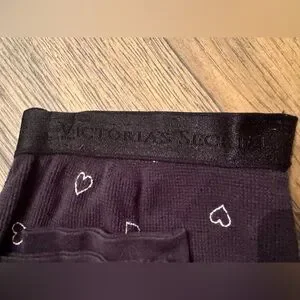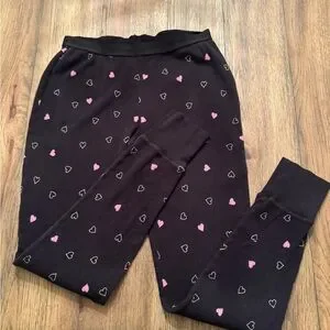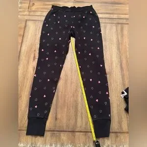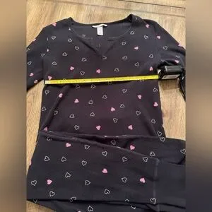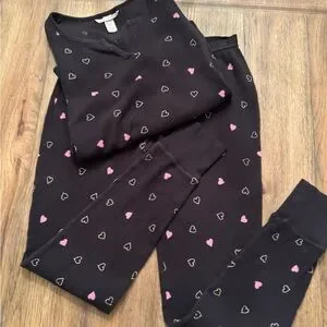 Cozy thermal Victorias Secret pajamas, black with hearts in size S Small. Please see pics for measurements. Good condition, only worn a few times. Perfect for Valentine’s Day!